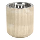 Enhance your beverage service with the help of this room360 Casablanca ice bucket! Featuring an elegant sandstone beige color with a linearly textured design, this piece will add a touch of sophistication to your table setting. The bucket's durable resin construction is not only stylish but practical as well, insulating your ice and allowing you to keep up to 2 qt. of ice for your guests to take at their convenience. This bucket holds just enough ice for your beverage service before melting and needing to be refilled.