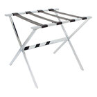 Designed for convenience, this luggage rack features a collapsible frame for quick and simple storage when not in use. It's equipped with four straps that efficiently support luggage and duffel bags, offering a reliable solution for keeping belongings organized and easily accessible. Additionally, it pairs seamlessly with other items in the London collection (sold separately) to create a cohesive and stylish look in any hospitality setting. Elevate your guests' stay with this functional and elegant folding luggage rack!