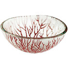 Serve your signature soups and salads with this Rosseto Kalderon Radici 8" round yellow glass bowl. Featuring a bold yellow color and a Radici design, this bowl boasts a hand-painted, decorative pattern that provides an artful presentation. The pattern shows a yellow coral-like design through clear glass. This cadmium-free bowl also offers a commercial-grade durability that will stand up to the demands of high volume establishments. Use it to create an eye-catching display for your contemporary restaurant, cafe, or hotel.
