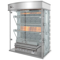 This Rotisol-France MasterFlame MF1375-6LP-LUX-B liquid propane rotisserie with 6 spits produces the perfectly tender, golden brown chicken that customers crave. Featuring 6 spits, this rotisserie can accommodate 30-36 chickens at once. Because it's designed for high-volume applications, such as in Michelin star restaurants, this rotisserie's independent motors allow it to cook large amounts of product at a fast rate without sacrificing quality. The spits rotate at 2 1/2 times per minute, allowing meats and vegetables to self-baste for a precise roast. The built-in halogen lamp and patented burners supply this unit with a strong heat source. Plus, its tempered front and side K-glass doors decrease any external thermal radiation, making your business more energy efficient.