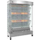 This Rotisol-France MasterFlame MF1375-6LP-LUX-C liquid propane rotisserie with 6 spits produces the perfectly tender, golden brown chicken that customers crave. Featuring 6 spits, this rotisserie can accommodate 30-36 chickens at once. Because it's designed for high-volume applications, such as in Michelin star restaurants, this rotisserie's independent motors allow it to cook large amounts of product at a fast rate without sacrificing quality. The spits rotate at 2 1/2 times per minute, allowing meats and vegetables to self-baste for a precise roast. The built-in halogen lamp and patented burners supply this unit with a strong heat source. Plus, its tempered front and side K-glass doors decrease any external thermal radiation, making your business more energy efficient.