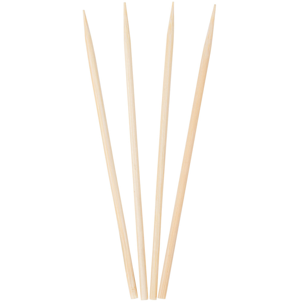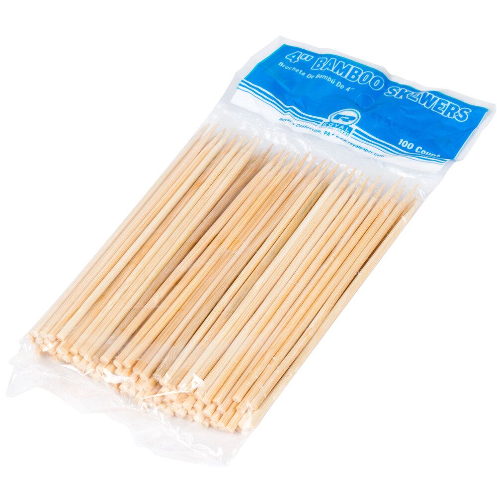 This 4" bamboo skewer is the ideal addition to any establishment grilling satay, mixed shish kabobs, or fresh vegetables! You can even use it to skewer fresh fruit for fruit kabobs. Skewers allow you to choose the ingredients and create a masterpiece that's fun to look at and delicious to eat, and this size is perfect for offering small, sample-sized portions. The possibilities are endless!