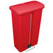 Maximize space and sanitation with the red 1883566 Slim Jim step-on trash can from Rubbermaid® Commercial. Able to sit upright against walls, it's perfect for your restaurant, school, hotel, corridor, or other area with limited space. Featuring a slim design and a small footprint, this unit is ideal for hallways, crowded walkways, and other public areas behind your bar or beside desks in office spaces. Plus, the trash can's built-in retainer band ensures that trash bag liners are held securely in place!