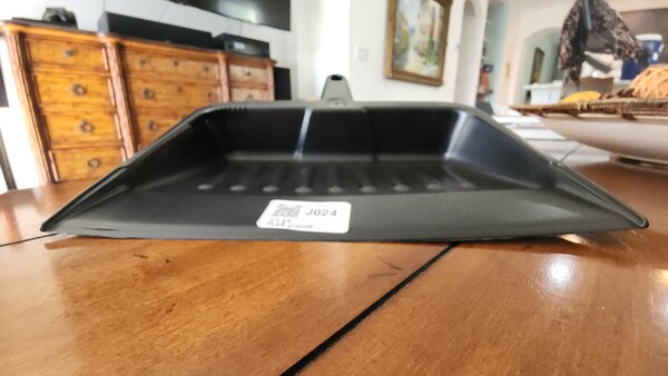 Bought as I expected it to be of pretty good quality from Rubbermaid. It would be 5/5 if it actually sat flat against the ground, but each side is warped up, so if youre sweeping something into it, you get debris under the dustbin rather than in it. I do like the feet on the back end that prevent it from tipping backward, and of course the hole in the handle for it to be hung. Back to the drawing board!