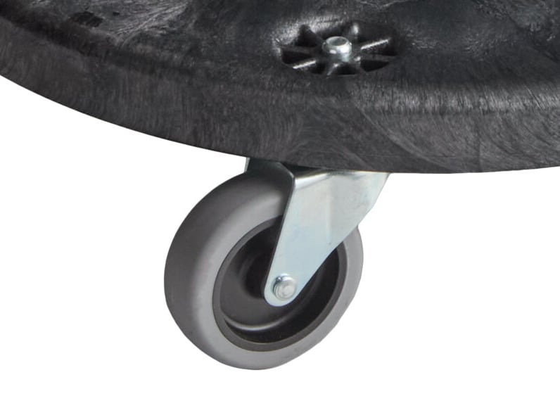 The Rubbermaid® Brute dolly secures tightly onto a Rubbermaid® Brute trash can easily with a twist on style ensuring that it won't tip or fall over as you move it throughout your commercial kitchen. Your Rubbermaid® Brute trash can will roll smoothly on any restaurant floor surface without the squeaky noise that some dollies leave behind.