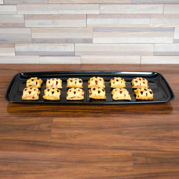 Sabert 9322 Mozaik 22" x 9" Black Plastic Platter / Catering Tray - 25/Case