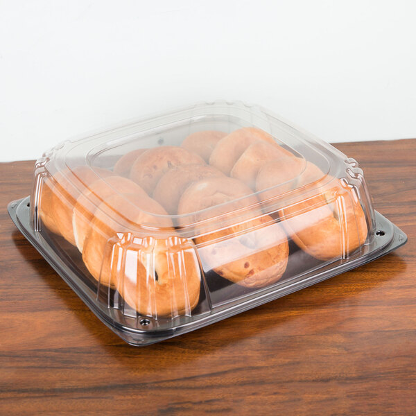 Thanks to its innovative, nesting-style Ultimate lid, the Sabert C9616 16" Ultimate disposable deli tray allows you to stack different sized Sabert deli trays / catering platters on top of one another, for safe and easy transport. The disposable deli platter's crystal clear, snap-tight locking lid also provides unbeatable lid security and seals in freshness.