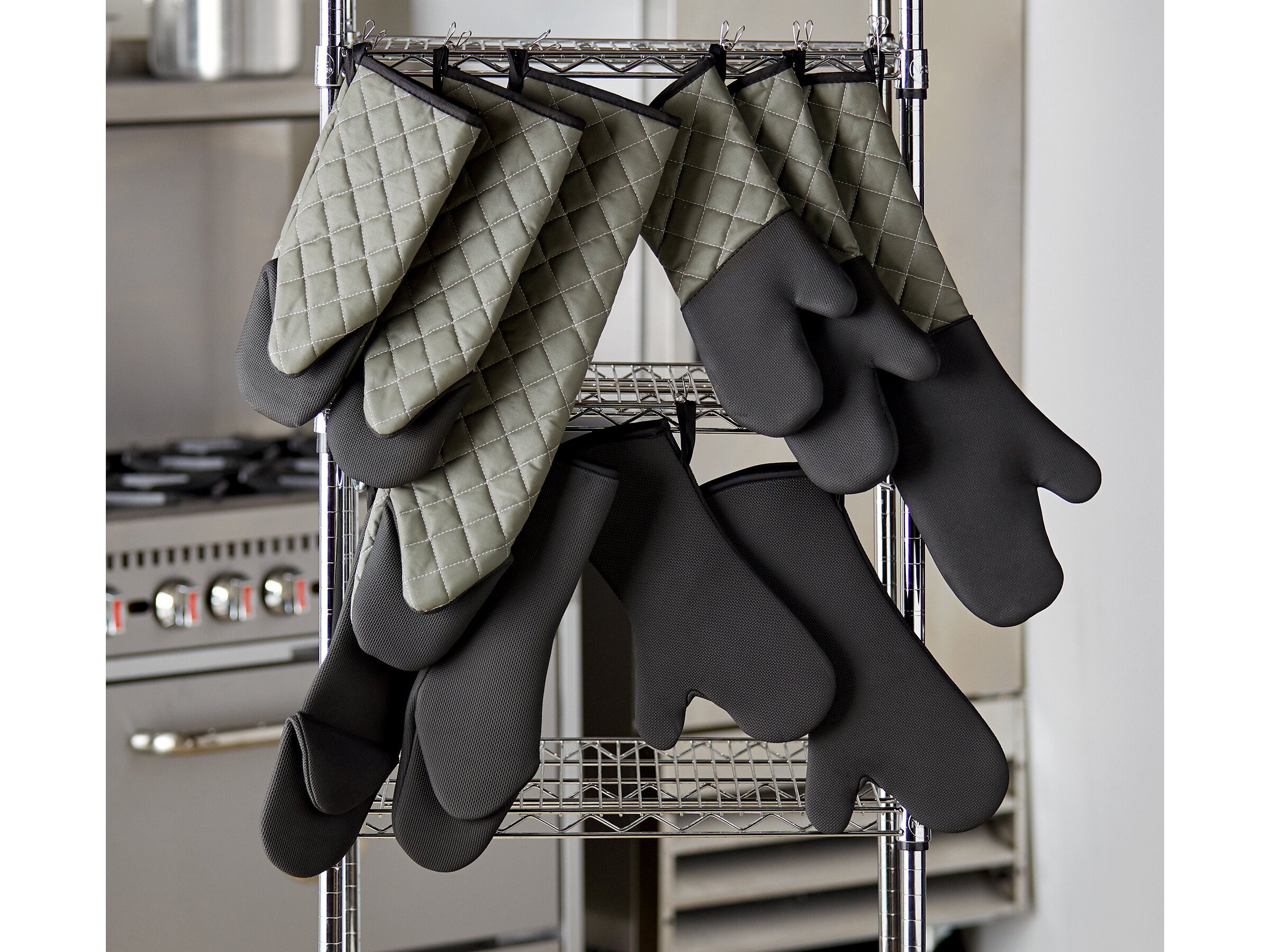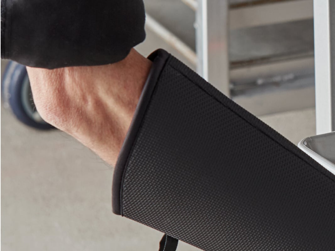 When not in use, an attached loop allows you to easily hang this mitt next to equipment and prep spaces.