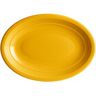 By ordering this Acopa sample, you're able to touch and see it in person to ensure it meets all the unique requirements of your foodservice space before committing to the purchase of a full case. Open your establishment up to creative presentations with this Acopa Capri 9 3/4" x 7" bamboo green oval Stoneware coupe platter. This platter features an iconic rolled edge design that's easy on your servers' hands, yet looks elegant on a creative tabletop. Its bamboo green color adds a pop of color for extra pizazz, making it great for restaurants, hotels, and healthcare facilities. Boldly colored dinnerware has been proven to boost food intake of healthcare patients, and high contrast between dish and food makes the food easier to identify. This platter is perfect for serving salads, entrees, and even appetizers thanks to its versatile size and show-stopping coupe rim. The coupe rim not only frames your culinary creations, but it makes the ideal location for including your signature sauces and purees alongside your fare. Pair it with additional matching Acopa Capri Stoneware pieces (sold separately) for a look that can't be beat.