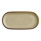 By ordering this Acopa sample, you're able to touch and see it in person to ensure it meets all the unique requirements of your foodservice space before committing to the purchase of a full case. For the perfect combination of rustic style and elegance, introduce this Acopa Keystone 14" x 6 3/4" Azora blue stoneware oblong coupe platter. Featuring a beautiful Azora blue color, this platter is complemented by beautiful chestnut brown speckles. It provides both durability and style, making it the ideal backdrop for all of your delicious creations. This piece is unique enough to be used as a standalone dish, or play up your tabletop and mix it with other Keystone pieces of like or varying colors. Use this platter for serving appetizers and hors d'oeuvres in style.