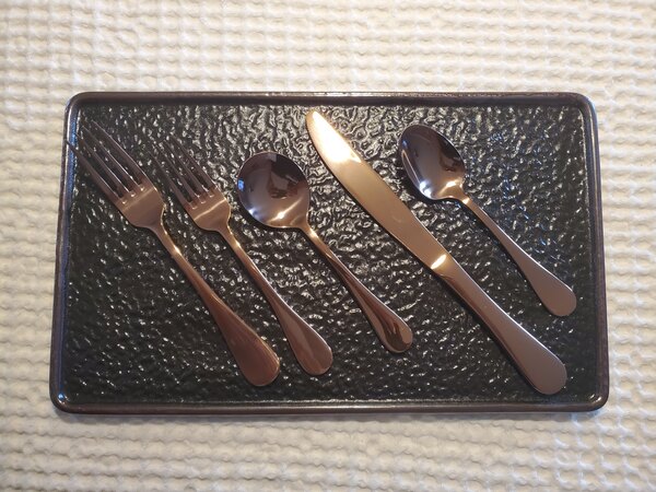 By ordering this Acopa sample, you're able to touch and see it in person to ensure it meets all the unique requirements of your foodservice space before committing to the purchase of any full case from the Acopa Vernon line. Create a modern, trendy table setting with this Acopa Vernon Rose Gold 18/0 stainless steel heavy weight flatware 5 piece sample set. Acopa's Vernon Rose Gold collection combines both traditional and contemporary design elements to achieve a sleek, eye-catching look. Curved handles with rounded edges also supply a comfortable feel while beautifully capturing and reflecting light to deliver a polished presentation for your guests. Plus, every piece in this versatile collection is perfectly weighted and balanced to fit easily into your patrons' hands, while their simple silhouettes offer effortless style and elegance.