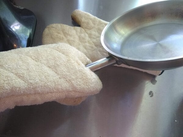 I have held a 500-degree pan for 15-20 seconds and they worked great! Thumb is a little stiff/oddly shaped which makes gripping the pans a little awkward, but other than that they are perfect.