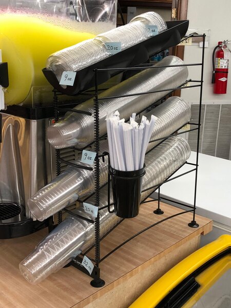 The San Jamar cup and caddy holder is very convenient for keeping straws organized and close to my cups. When I make a drink the holder is nearby with straws, which helps with quick service.