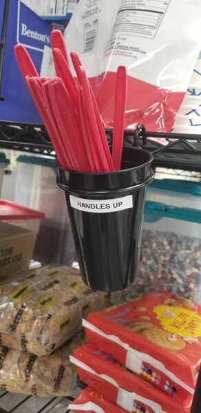 We utilize these as treat spoon holders around our ice cream shop and they work great! They make it convenient for our staff to always have spoons within reach to make things more efficient.