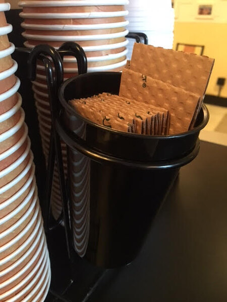 Works perfect for our do it yourself coffee bar, it is able to connect to the caddy we bought to hold the cups and lids. Everything in one handy spot.
