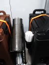 sturdy plastic cup, and wire hanger. shipping was quick and packaged well., can hang on, not only what they show in picture, but also thin divider walls or even other equipment.