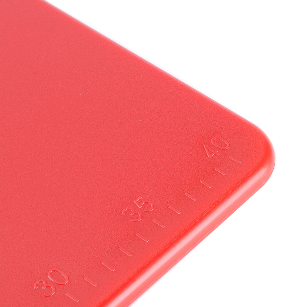 For additional convenience, this board features an embossed ruler with both inch and centimeter graduations to aid in measuring and portioning.
