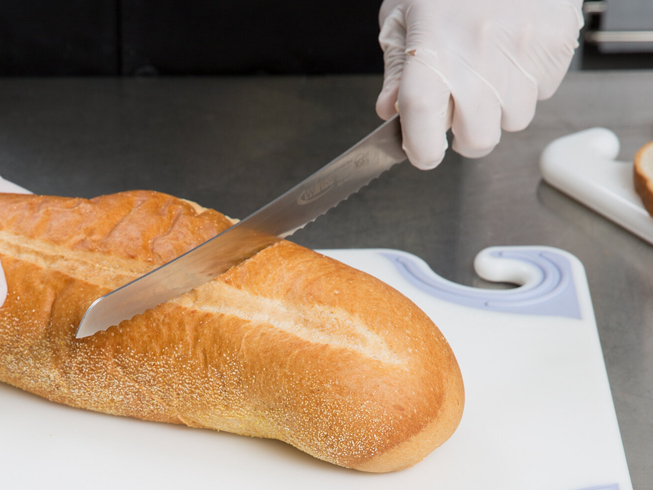 This cutting board is made to help limit unwanted knife dulling, but tough enough to prevent unsafe cut-grooving where dirt and bacteria can hide. This board also features non-slip grips on the corners which eliminate the need to use an unsanitary towel to prevent your cutting board from sliding around on the counter.
