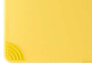 For additional convenience, this board features an embossed ruler with both inch and centimeter graduations to aid in measuring and portioning.