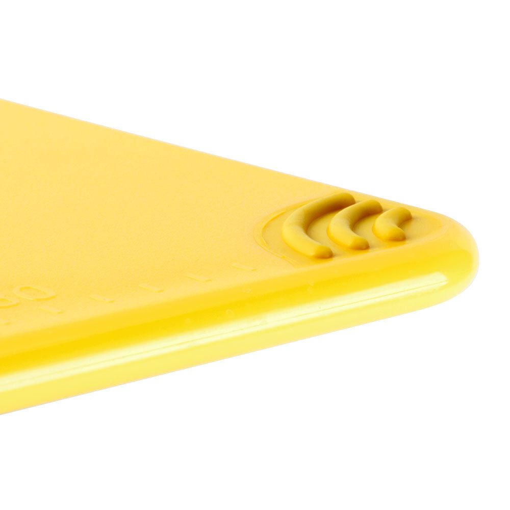 This yellow board is designed to help prevent cross contamination. As part of a color-coded system, it can be used specifically for poultry, and it will assist in ensuring that your chefs comply with the USDA's Hazard Analysis and Critical Control Point (HACCP) program.