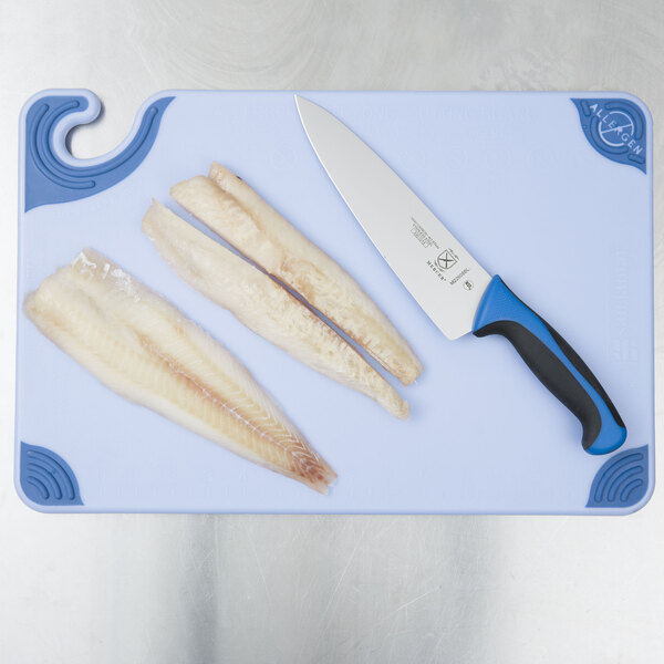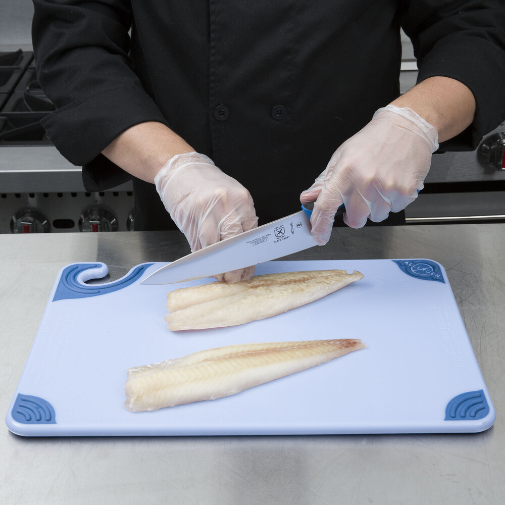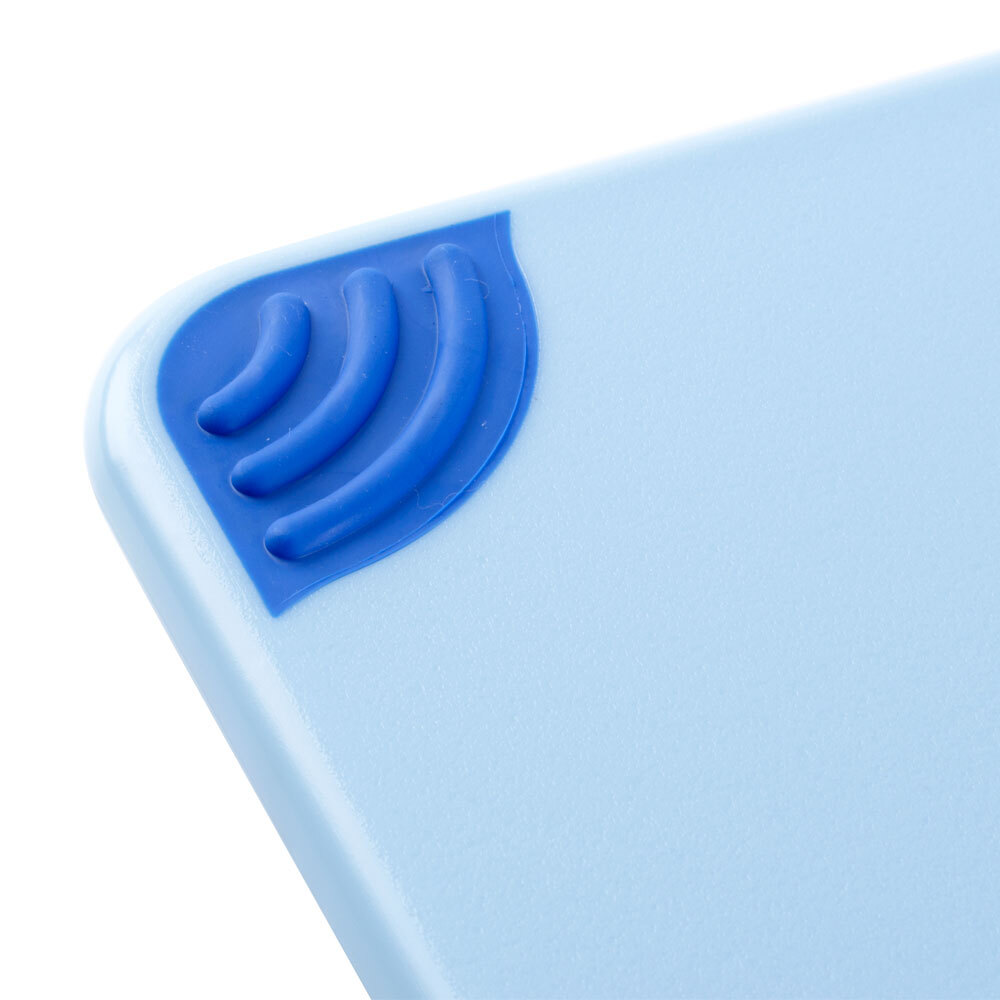 This blue board is designed to help prevent cross contamination. As part of a color-coded system, it can be used specifically for seafood, and it will assist in ensuring that your chefs comply with the USDA's Hazard Analysis and Critical Control Point (HACCP) program.