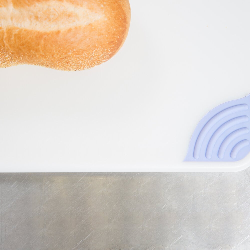 This cutting board is made to help limit unwanted knife dulling, but tough enough to prevent unsafe cut-grooving where dirt and bacteria can hide. This board also features non-slip grips on the corners which eliminate the need to use an unsanitary towel to prevent your cutting board from sliding around on the counter.