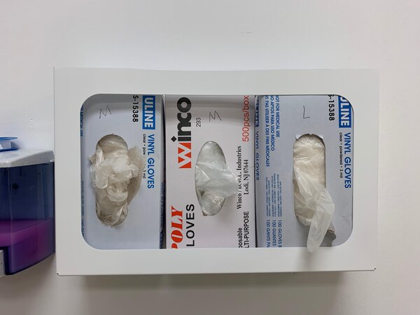 Customers appreciate this glove dispenser for its easy installation and sturdy build, capable of holding up to three boxes of gloves. Its durability is highlighted by its ability to withstand constant bumps in a busy environment. Some users have customized its appearance by painting it, indicating its adaptability to different decors.