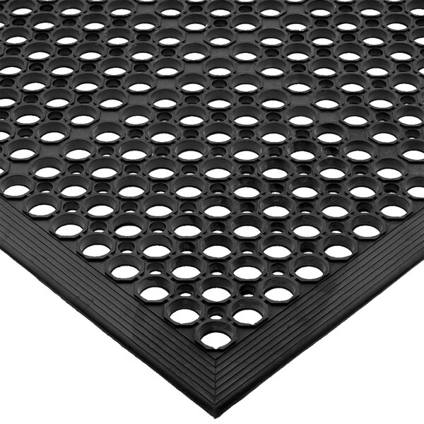 Ships free withAdd an extra layer of safety to your kitchen with this San Jamar KM1100B EZ-Mat 3' x 5' black floor mat. During a busy dinner rush, the prep zone in the kitchen and the area right behind the bar are high-traffic areas prone to food and drink spills. Avoid dangerous slips and falls with this light-duty mat that provides a safe and comfortable walking and standing area for your employees. The entire mat has drainage holes that ensure that liquid doesn't get trapped on top and create a hazardous surface and is grease-resistant for additional safety.