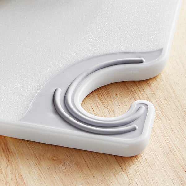 Protect your countertops and knives with this handy San Jamar CBG912WH Saf-T-Grip® 12" x 9" x 3/8" white cutting board! Designed to minimize foodborne illnesses by promoting superior safety and sanitation, this item is the perfect addition to any busy commercial kitchen.