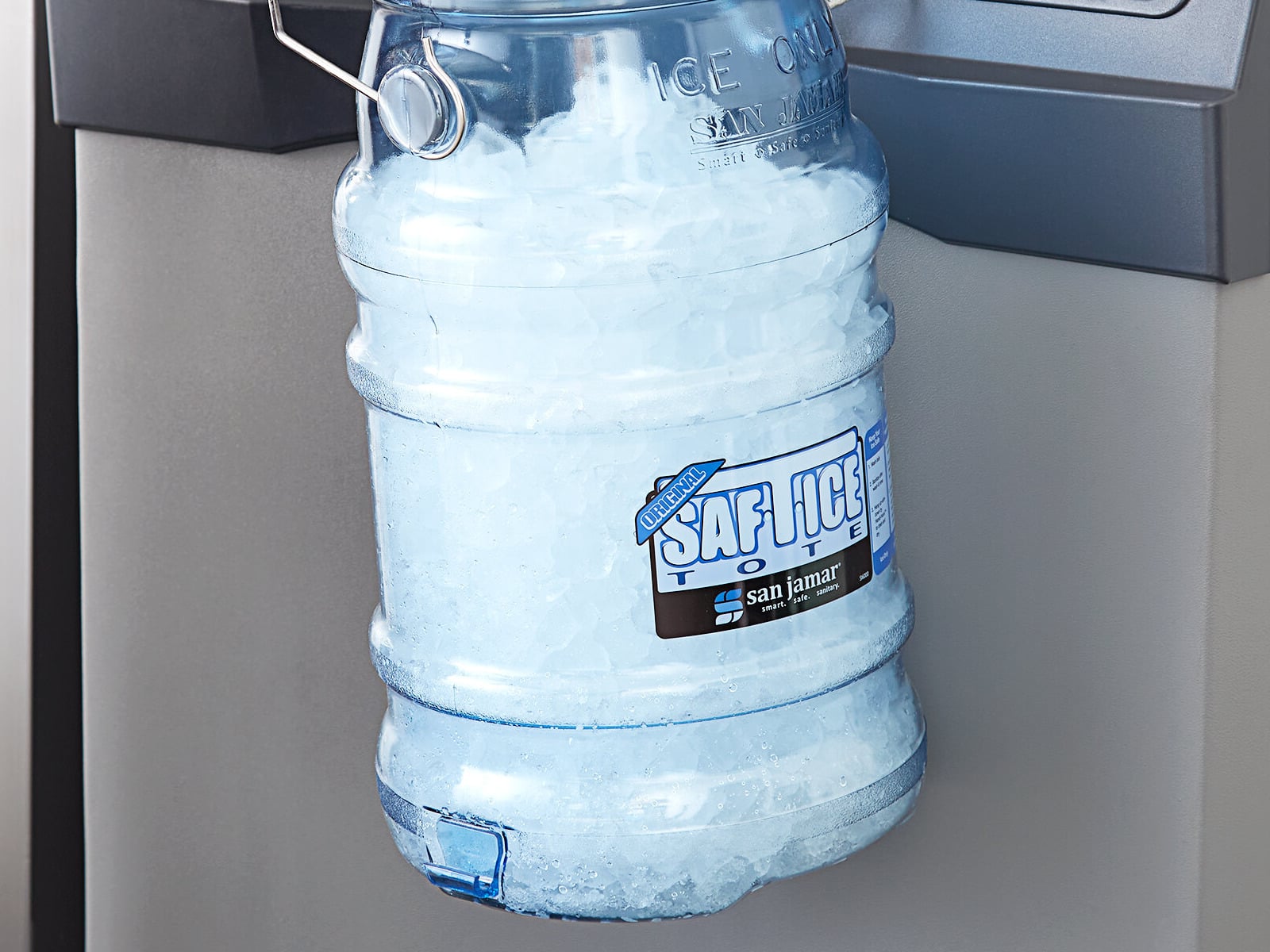 Instead of making an icy mess when filling the bucket, always have it nearby. Designed with a patented HACCP Hanger, this tote attaches directly to ice machines for faster and easier filling. Plus, it raises the tote off the ground for better sanitation.