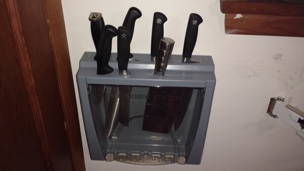 We love our safe knife station. It was easy to put up and it helps the kitchen remain safe. The knifes are easily seen and kept in the station.
