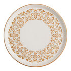 The Santa Anita Valentina stoneware collection by Arc Cardinal serves as a striking backdrop for virtually every menu selection thanks to its perfect balance of botanical aesthetics and artisanal charm. Inspired by Mexican heritage and style, the Valentina line features a symmetrical, stylized floral ring near the rim, encircled by decorative vines and curling foliage. This plate showcases the intricate pattern in forest green, enhancing its natural elegance and traditional feel. Perfect for serving salads, sandwiches, and desserts, this Santa Anita Valentina plate from Arc Cardinal guarantees long-lasting and reliable performance in your gourmet restaurant.