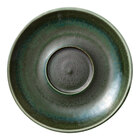 Create a dynamic table setting with this Heart & Soul Perfect Match 6 1/8" avocado porcelain saucer. Featuring a Mediterranean-inspired design and robust colorways, this saucer will add a refined touch of elegance to your tables. It is coated in a twice-fired, natural reactive glaze that makes every piece unique. The dark green avocado colorway is reminiscent of ripe avocado skins, contrasted by silver pigments.