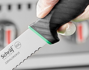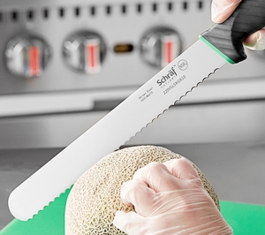 Schraf 10" Serrated Edge Slicing Knife with Green TPRgrip Handle