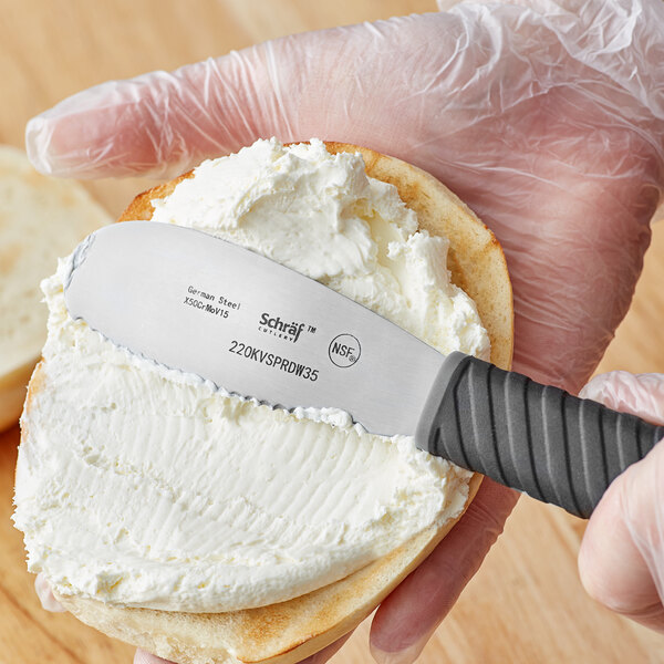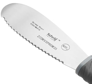 - Item #: 220kvsprdw35Schraf 3 1/2" Scalloped Stainless Steel Sandwich Spreader with TPRgrip Handle