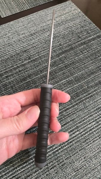 This is my favorite brand for knives! The grip is really good, it doesn’t slip, and it doesn’t feel cheap or plastic like other brands. I loved it—actually bigger than I expected, but I wanted it that way, and it’s perfect. / Esta es mi marca favorita en cuchillos! El grip es muy bueno, no se resbala y no se siente barato ni de plástico como otras marcas. Me encantó, de hecho es más grande de lo que esperaba, pero lo quería así y está perfecto.