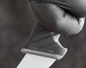 The finger guard formed into the handle increases control and stability and keeps hands safe by preventing contact with the blade while cutting. It also contributes to the ergonomic handle design, helping to ensure all-day user comfort and endurance while tackling rigorous and repetitive food preparation tasks.