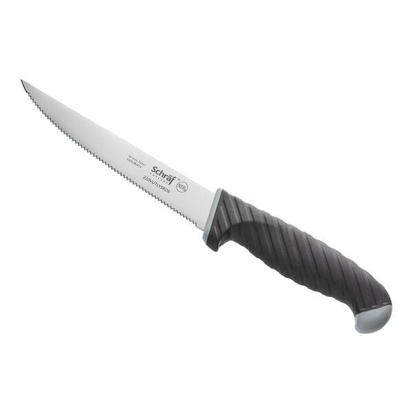 Perfect for use in restaurant kitchens, bars, and culinary schools, this versatile serrated edge utility knife is ideal for cutting through soft fruits and vegetables while piercing relatively tough skins without doing damaging to soft insides. In addition to a variety of fruits and vegetables, it's also great for cutting breads. Crafted with German Steel: The Standard of Excellence.
