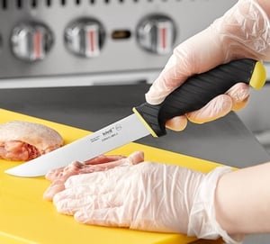 Upgrade your cutlery collection with this Schraf 6" utility knife with yellow TPRgrip handle.