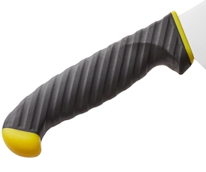 Part of a convenient HACCP colored cutlery line, this knife has a black / yellow colored handle that allows it to stand out and makes it great for creating a color-coded system in your kitchen to prevent cross-contamination. Designed for all-around kitchen use, the chef knife is ideal for use in any establishment, from high-volume restaurants and bars to culinary schools or cafes. Use this versatile knife to slice, chop, dice, and mince an extensive variety of ingredients. Also, the knife's essential pointed tip comes in handy when making delicate and detailed cuts, such as when scoring meat and vegetables.