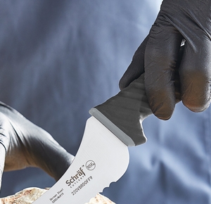 The finger guard formed into the handle increases control and stability and keeps hands safe by preventing contact with the blade while cutting. It also contributes to the ergonomic handle design, helping to ensure all-day user comfort and endurance while tackling rigorous and repetitive food preparation tasks.