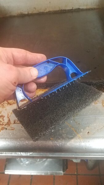 Not much to say about a grill scrubber, built heavy enough to take the constant use and abuse of a commercial kitchen. If you've got a flat top, you need one!