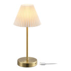 Globe 14" Mid-Century Modern Matte Brass Battery-Powered LED Table Lamp with Beige Pleated Linen Shade - 1.8WItem number84891011083