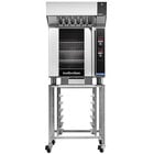 Moffat E32D5-2P Turbofan Single Deck Full Size Electric Digital Convection Oven with Steam Injection, Ventless Hood, and Stainless Steel Stand - 208V, 1 Phase, 5.8 kWItem number952e32d5v32p