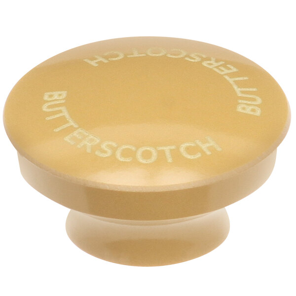 Keep your condiment dispenser labeled and easy to use with the Server 82023-202 "Butterscotch" knob. As an alternative to the knob that comes standard on select Server condiment dispensers, this one adds the convenience of product labeling with the text "Butterscotch" etched twice along the top. It's also color-coded yellow for easy product identification.