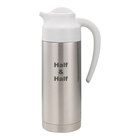 Keep your milk perfectly chilled with this Service Ideas SteelVac™ 33.8 oz. stainless steel insulated "Half & Half" creamer with black lid! Designed with a virtually unbreakable stainless steel liner, the vacuum insulation of this creamer retains the temperature of its contents for 4-6 hours, ensuring that your milk stays fresh and at the correct serving temperature. This creamer features a "Half & Half" graphic that is laser etched onto the body, making it easy to distinguish among various dairy options. The brushed stainless steel body with black plastic lid also offers a professional look that complements the decor of any setting.