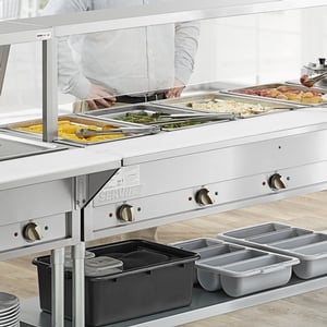 The steam table includes an adjustable undershelf to store extra serving utensils, food pans, or lids to keep all the tools you need close at hand.