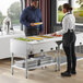 For extra convenience, the polyethylene 8" deep by 1/2" thick cutting board gives you a little extra work space to prep foods, change out food pans, or fill plates.