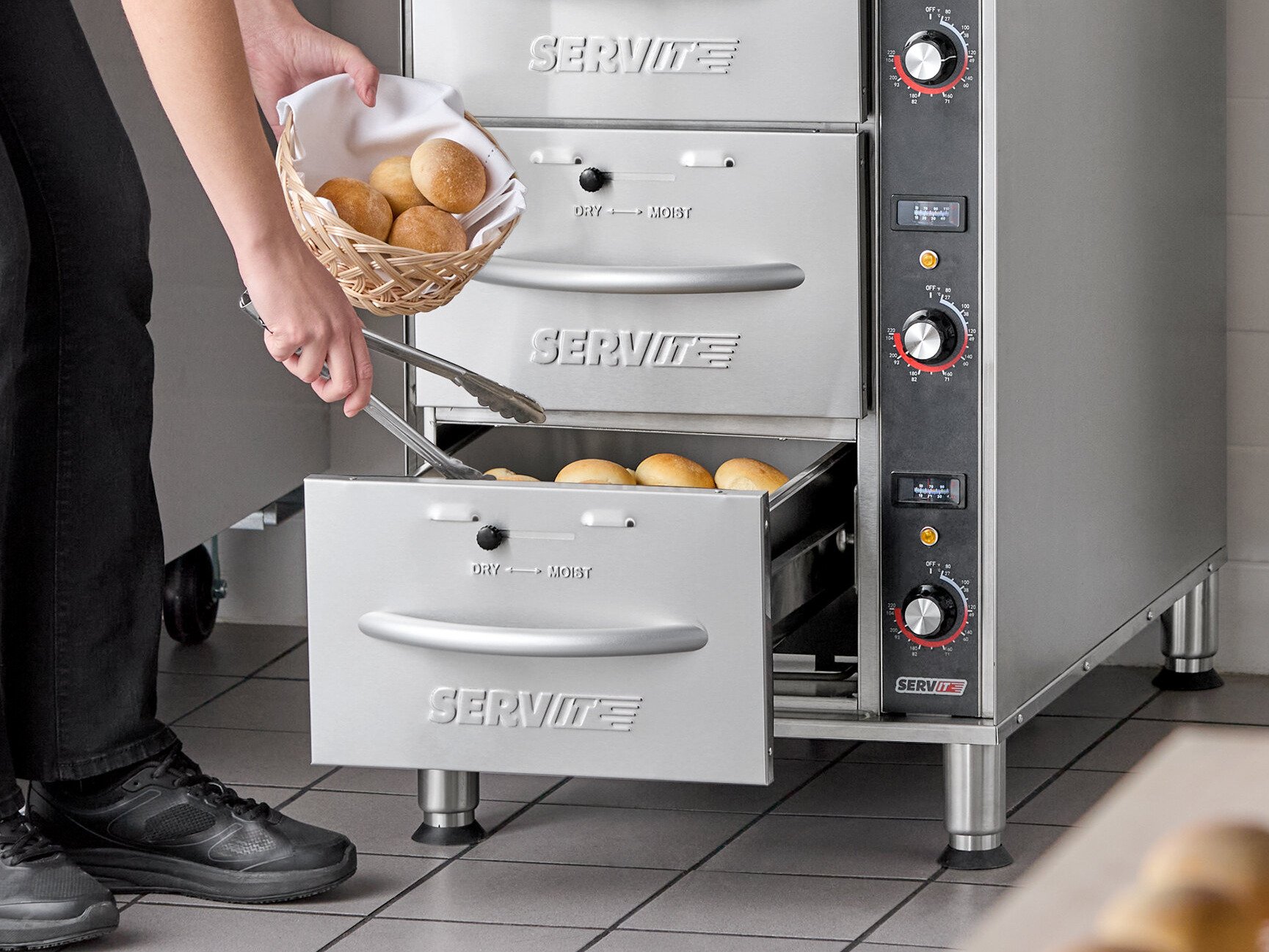 The drawer is easy to pull out. It feels warm outside if you put your hand against it but once you open it up you can feel how hot it can really get. Great for keeping our bread rolls nice and warm