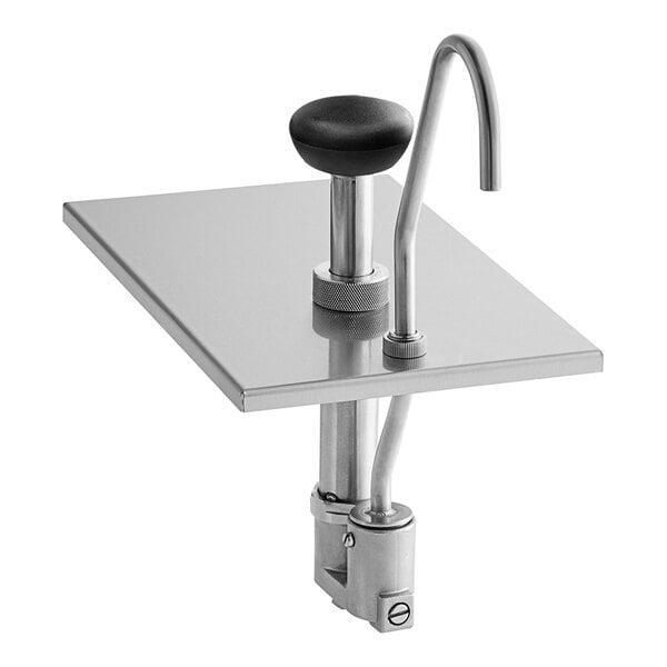 Easily dispense and portion your condiments with the ServSense 0.4 fl. oz. stainless steel pump with lid for 1/4 size 6" deep hotel pan.